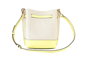 Michael Kors Emilia Small Canvas Snakeskin Print Leather Bucket Bag Messenger Crossbody Handbag (Buttercup)